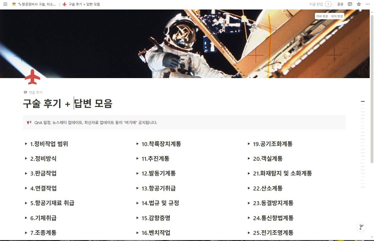 🔧[예시]항공정비사 구술, 자소서 양학하기 | Notion